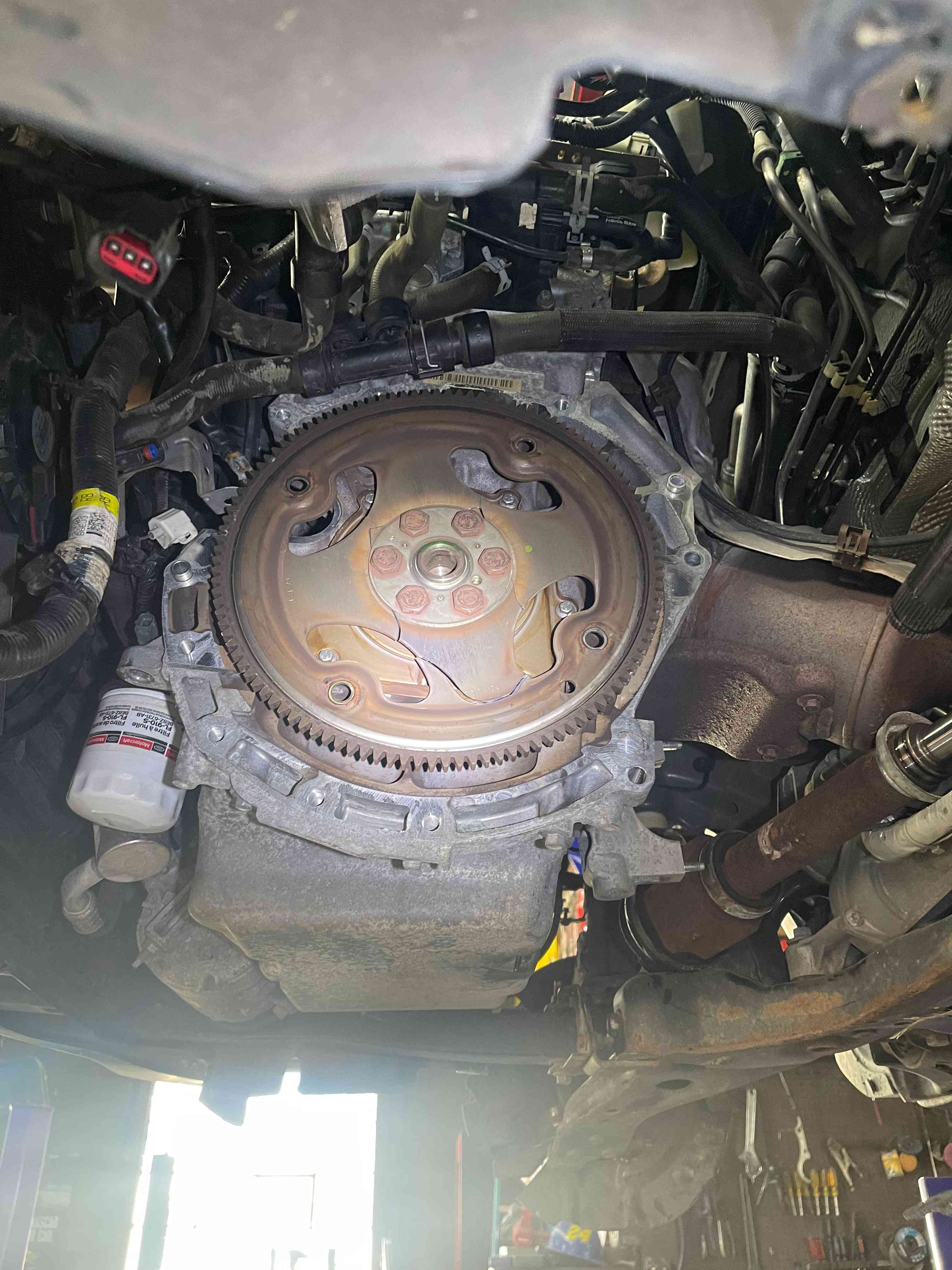 Bud's 2016 Ford Escape had a prominent knocking sound that resonated throughout the whole engine. Upon further inspection it appeared the flywheel had completely seperated from the crankshaft. After a hasty repair using an OEM replacement, this Escape is able to get back on the road for years to come!
